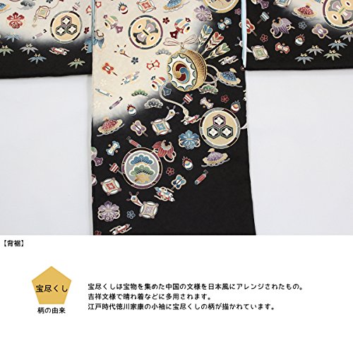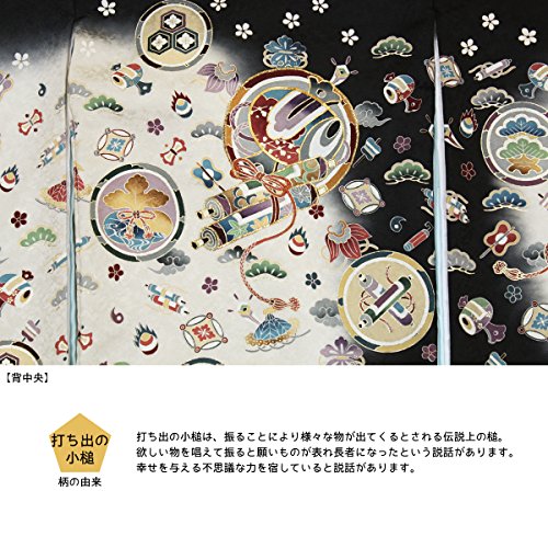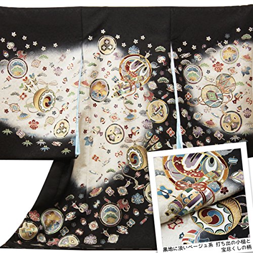 【紋入れ付き】お宮参り 着物 男の子【絹100% 友禅 刺繍】黒 ベージュ 打ち出の小槌 宝尽くし【風呂敷プレゼント包装付き / 熨斗対応】初着 産着 のしめ男児 祝着 正絹