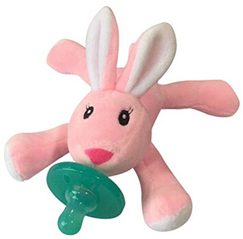 おしゃぶり付き抱っこぬいぐるみ 赤ちゃん ベビー用 動物ぬいぐるみ おもちゃ 両用 歯がため おもちゃ (ピンクのバニー)