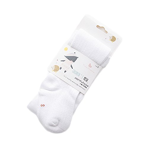 ベビーガール ズシームレス コットン メッシュ タイツストッキング 底タイツ パンスト (ホワイト-XS)