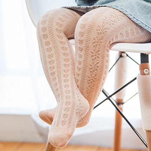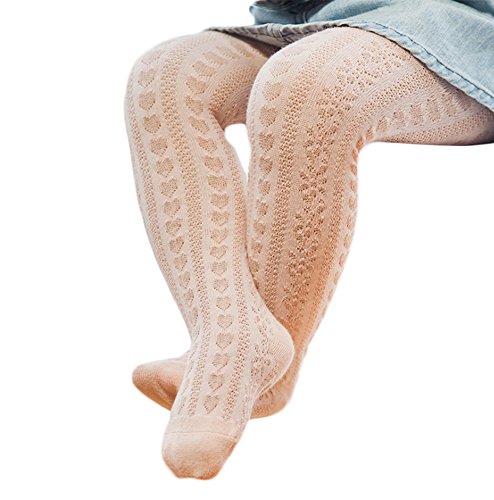 ソリッドカラー メッシュ コットンの子供ベビータイツ ラブスタイル ガールズ 赤ちゃん ストッキング (21-23, 肉粉)