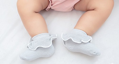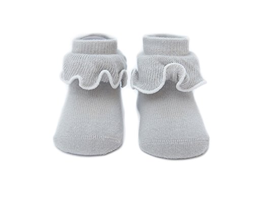 春秋 綿 ベビー ソックス 靴下 新生児用ソックス 可愛い 柔らかい キクラゲレースソックス 赤ちゃん 出産祝い (M, グレー)