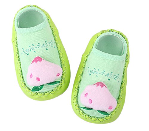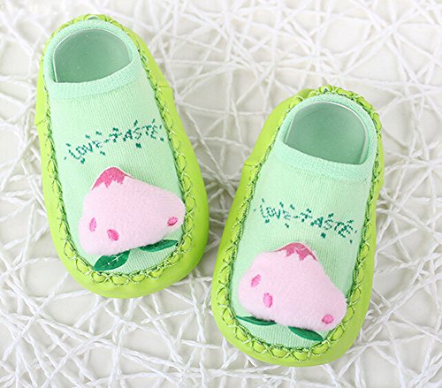 赤ちゃん靴 ソックスシューズ ベビーシューズ 部屋履き トレーニング かわいい フルーツシリーズ 暖かソックス 靴下 滑り止め (M, グリーン)