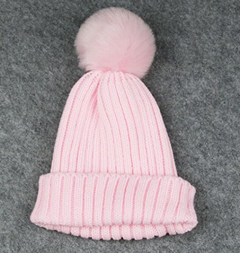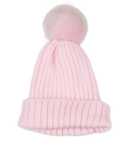ニット帽 キッズ ニットキャップ ポンポン付き帽子 毛糸帽 折り返し 無地 ベビー 帽子 防寒保温 人気 レジャー 旅行 アウトドア (ピンク)