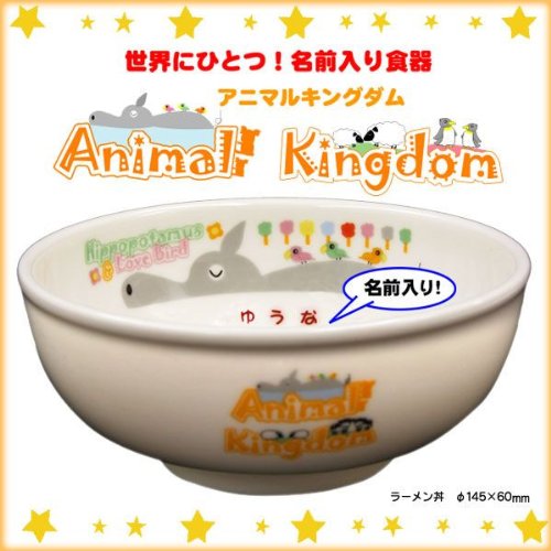 【ラーメン丼】 ご希望の『名前入り』食器 アニマルキングダム (※煮沸の出来るにぎにぎスプーン&フォークセット 付き) 名入れカラー:男の子用【青文字】