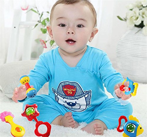 夢の空 0-1歳の赤ちゃんのためおもちゃ 新生児 鈴を振る玩具 知育玩具幼児教育 聴覚に刺激 乳幼児の手の鈴を鳴らす 5点セット