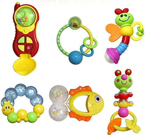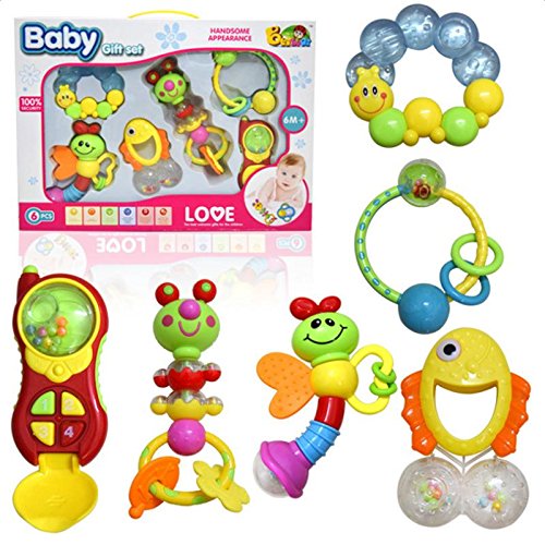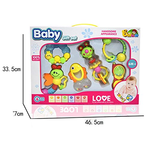 夢の空 新生児プラスチック 鈴を振る玩具 0-1歳の赤ちゃんのためおもちゃ 知育玩具幼児教育 聴覚に刺激 乳幼児の手の鈴を鳴らす 6点セット