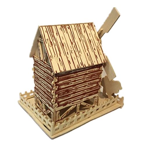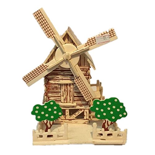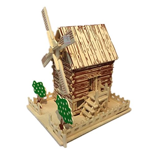 夢の空 手芸 手作り シミュレーション模型アクティビティ 組み立て 木製3D 立体 DIYパズルジグソー 積み木 セット 田園風車 色を塗ることできる お誕生日、進学お祝いプレゼント 飾り物 知育玩具 多機能おもちゃ