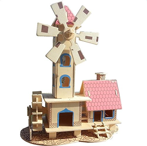 夢の空 手芸 手作り シミュレーション模型アクティビティ 組み立て 木製3D 立体 DIYパズルジグソー 積み木 セット オランダ風 風車建築 色を塗ることできる 飾り物 知育玩具 多機能おもちゃ