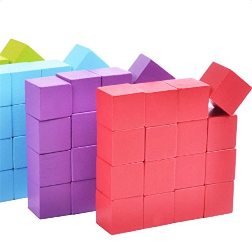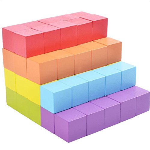 夢の空 木製 100個 カラフル 立体ブロック積み木2.5cmx2.5cm立方体 色識別 形状識別 カウント認知能力 知育玩具 収納袋とパンフレット付き