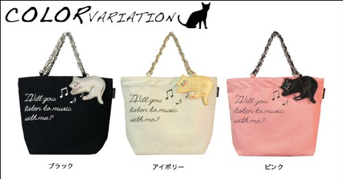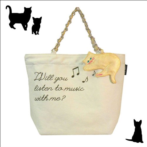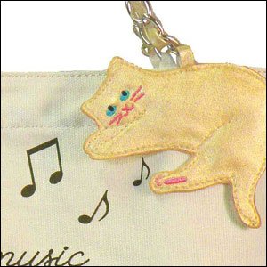 ゆらゆら揺れるネコのチャームが心地良いリズムを奏でてくれるかわいいトートバッグです。