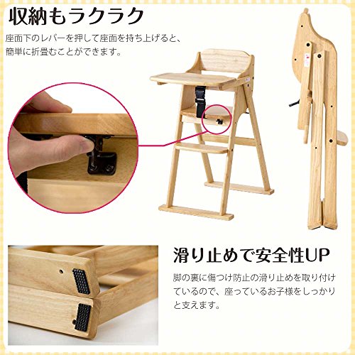 - 【特徴】・収納しやすい便利な折畳み式! /・ナチュラルな質感 /・安全ベルト付で安心 /・テーブルが後ろに回せる!