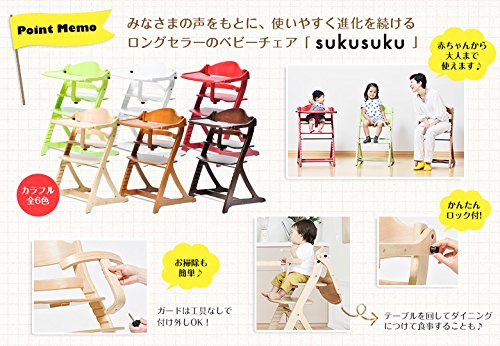 - みなさまの声をもとに、使いやすく進化し続けるロングセラーのベビーチェア「すくすくチェア」。座板と足置き板は成長に合わせて細かく高さ調節でき、腰がすわったお子さまから、大人まで使うことができます。