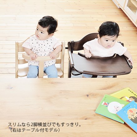 大和屋のベビーチェア。ガードが付いたハイチェア「すくすくチェア スリムプラス」のナチュラル色です。すくすくチェア プラスの機能や使いやすさはそのままに、幅をすっきりコンパクトにしました。成長に合わせて高さ調節ができ、腰がすわったお子さまから10歳ごろまでお使いいただけます。ガードは工具なしで取り外せるのでお掃除も楽々です。波型形状の座板で赤ちゃんがひざを曲げやすく、ママは座らせやすくなっています。◇サイズ:幅39.6×奥行51.6×高80.5cm◇本体重量:約5kg◇材質:ラバーウッド材◇生産国:インドネシア◇耐荷重:約60kg◇対象年齢:7ヶ月頃(腰がすわってから)〜10歳頃まで