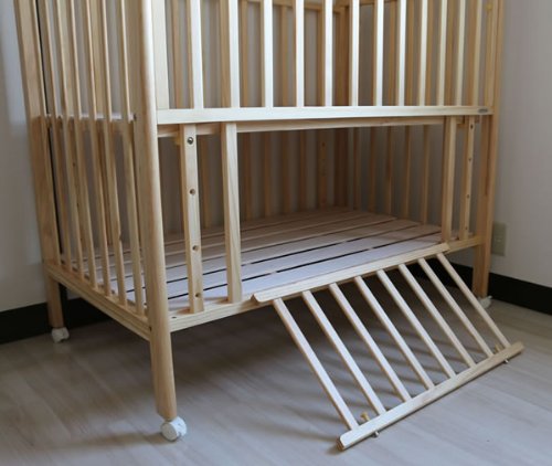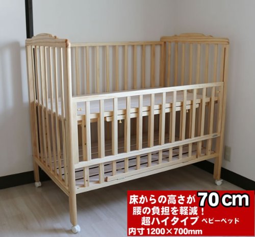 - 4段階の床板高さ調節可能なお買得ハイタイプのベビーベッド。