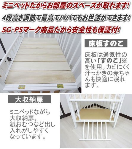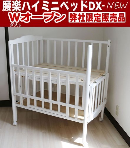 アジル ハイタイプ ミニサイズベビーベッド Wオープン腰楽~ハイミニベッドDX-NEW ホワイト コンパクトベッド