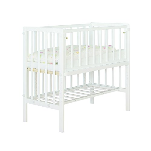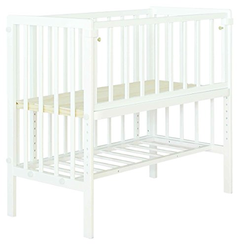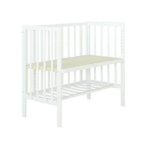 ●大人のベッドにつけて安全に添い寝ができるベビーベッド。●置く場所に困らないコンパクトなサイズ性で、寝室にもすっきり収まります。●ママのそばでありながら、柵で囲われているために安全に添い寝をすることができ、大人のベッドの高さに合わせやすいよう、赤ちゃんの寝る床板を約3cmずつ8段階、さらにつかまり立ちするようになったら一番下へと、計9段階に高さ調整することができます。●大人用ベッドにぴったりとつけた状態でも開閉扉が取り付け・取り外しできるので、寝かしつけた後に、ママがそばを離れるときにも安心です。●床板は通気性の良いすのこ仕様で、カラーはナチュラルとホワイトの2色からお選びいただけます。●<基準の適合を示すSG・PSCマーク付き>●《製品仕様》●サイズW約965mm×D約513mm×H約868mm●【詳細サイズ1】●床板9段階調整:500468436404372340308276189mm●【詳細サイズ2】●床板部分内寸W900×D450mm●材質:パイン材仕様組立式●塗装:ラッカー塗装本体重量約8.5kg●生産国:中国●梱包重量:約11.6kg●対象年...