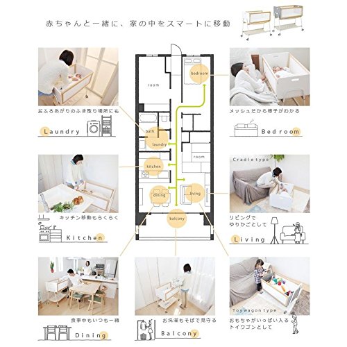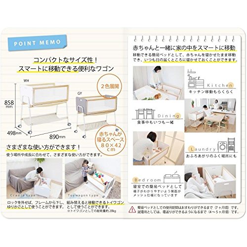 ベビーベッド 添い寝 ミニ コンパクト マットレス付き 収納付き リリワゴン 大和屋 LiLiwagon 移動ができる簡易ベッド ゆりかご (ホワイト色)