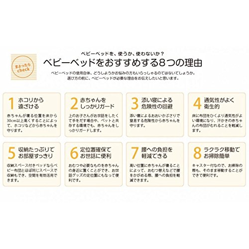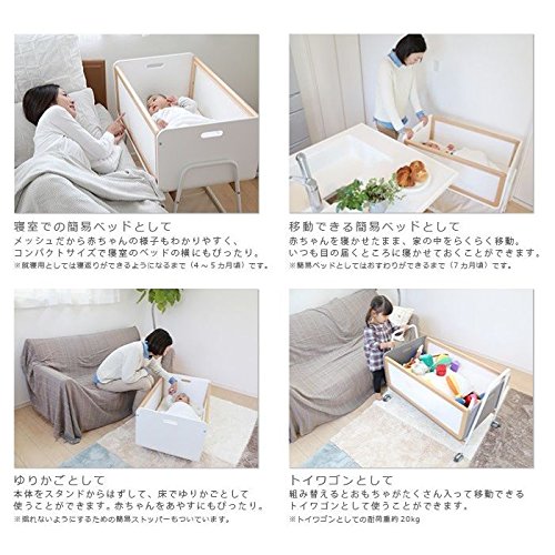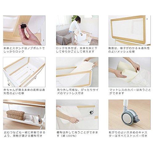 仕様:組立式(お客様組み立て) 対象年齢:簡易ベッドとして/新生児~7ヵ月頃(体重9kg以下) ※就寝用としては寝返りができるようになるまで(4~5ヵ月頃まで) トイワゴンとして/耐荷重20kg以下 耐荷重 棚布部 5kg 本体重量:約13kg 備考:4輪キャスター(すべてストッパー付) マットレスカバー、棚布は洗濯可。メッシュ取り外し不可。 ※送料無料は基本〈無料〉となります。一部地域・離島等の条件によりましては別途追加送料が必要となります。 関連キーワード(本商品の説明ではございません) 子供部屋 木製 成長 シンプル 北欧風 プレゼント 贈り物 出産祝い お祝い 赤ちゃん用 人気 おしゃれ ナチュラル