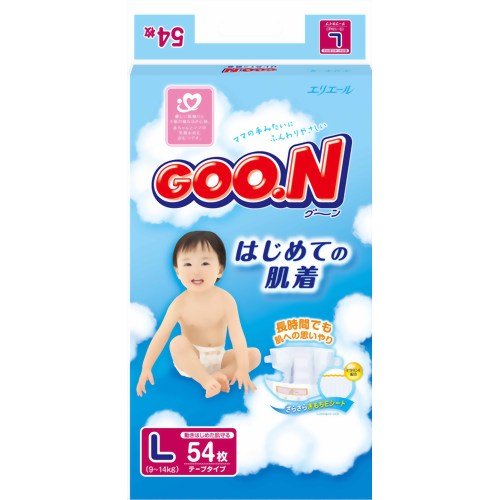 敏感肌にもやさしい! グーン はじめての肌着 テープLサイズ 54枚 4入り