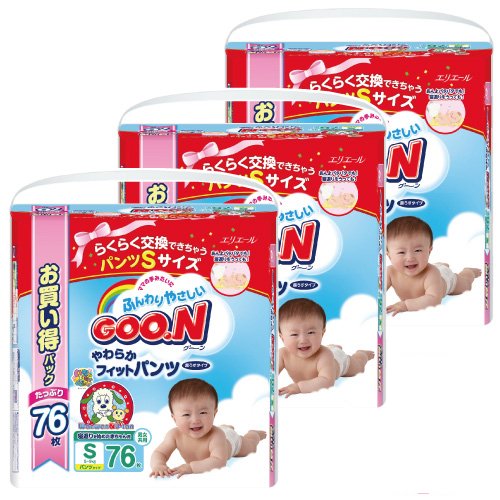 【ケース販売】グーン やわらかフィットパンツ Sサイズ(5~9kg) 76枚×3個 (228枚)
