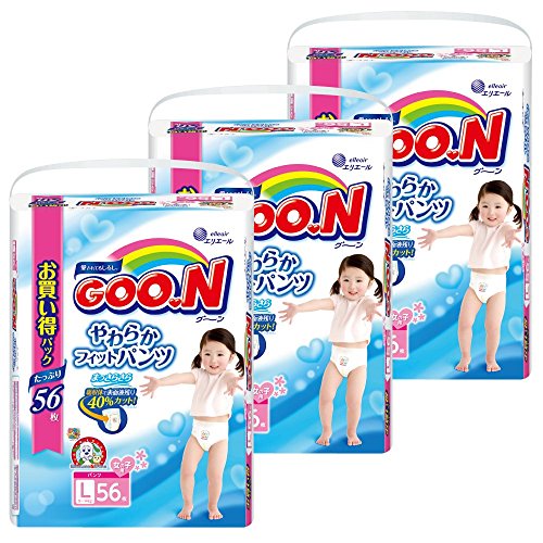 【ケース販売】グーン やわらかフィットパンツ Lサイズ(9~14kg) 女の子 56枚 ×3個 (168枚)