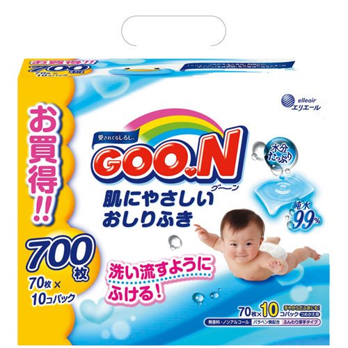 グーン肌にやさしいおしりふきつめかえ用 70枚×10P