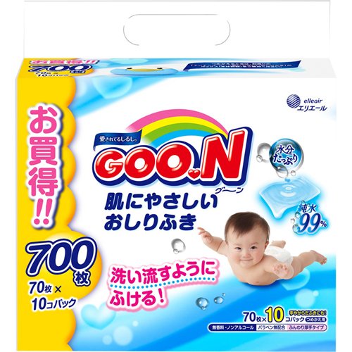 大王製紙 グーン 肌にやさしいおしりふき つめかえ用 70枚×10個 E463565H
