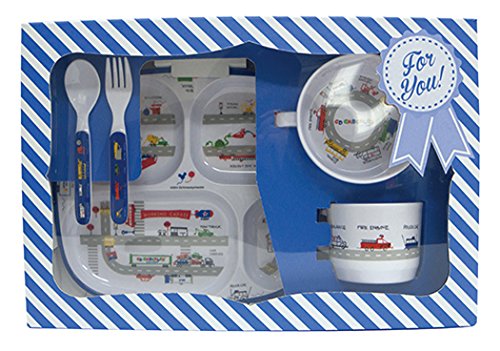ED EMBERLY(エドエンバリー)ワーキングカーズから待望のギフトセットが新登場です。落としてしまっても割れにくいメラミン素材の、プレート、フォーク、スプーン、ボウル、マグがギフトボックスに入った5点セット。普段使いはモチロン、入園入学のプレゼントに喜ばれるアイテムです。