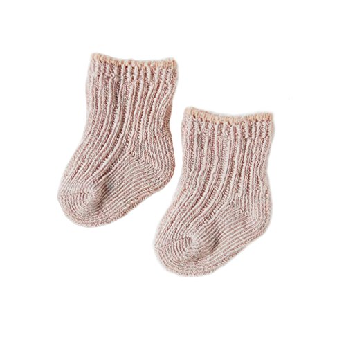 赤ちゃんの足を締めつけにくくしたリブ編みの靴下です。