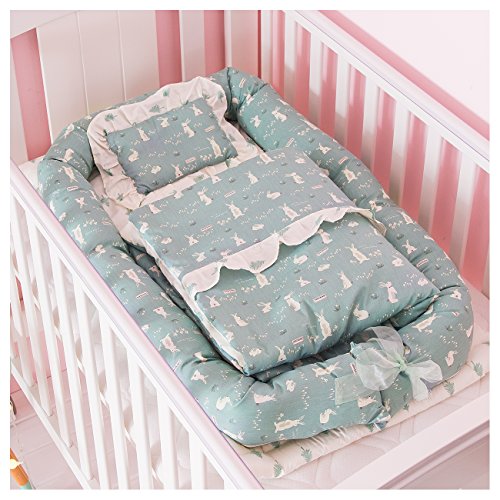 妖八 ベビーベッド,柔らかい 快適 ポータブル ベビーマットレス ,適0-24月大赤ちゃん (グリーン)