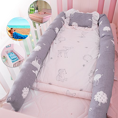 妖八 ベビーベッド,柔らかい 快適 ポータブル ベビーマットレス ,適0-24月大赤ちゃん (グレー)