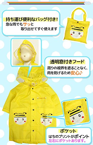 レインコート ベビー キッズ ランドセル対応 レインウェア 収納バック付 雨カッパ ハチ-イエロー 90cm