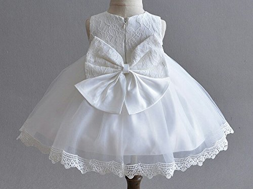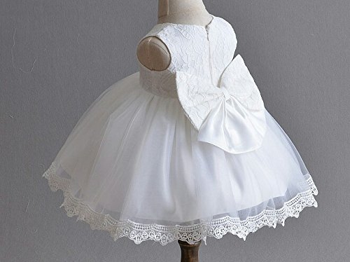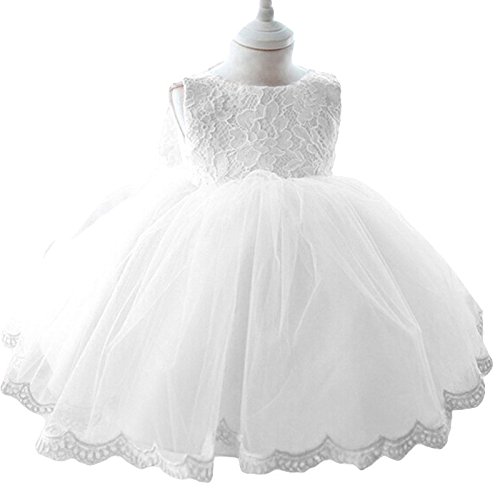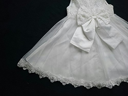 【子供ドレス部屋】 レースドレス ホワイト キッズドレス ベビードレス プリンセス 結婚式 発表会 誕生日 フォーマルドレス (90cm)