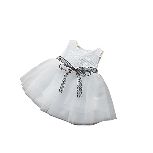 【子供ドレス部屋】 レースリボンワンピース ホワイト ベビーワンピース プリンセス 結婚式 誕生日 キッズワンピース フォーマルドレス ベビードレス ワンピース (90cm)