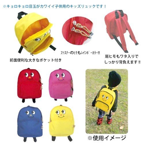 かわいいフェイスリュックサックです! くりくりおめめのかわいいデザインです^^ 前面に大きなポケットつきで便利!! ショルダー部分は長さ調節が可能です 遠足などのお出掛けに便利なバッグ◎ 他色完売1色の為の数量限定訳あり特価になります 海外製品の為縫製、着色等は、雑です、 あらかじめご了承くださいませ