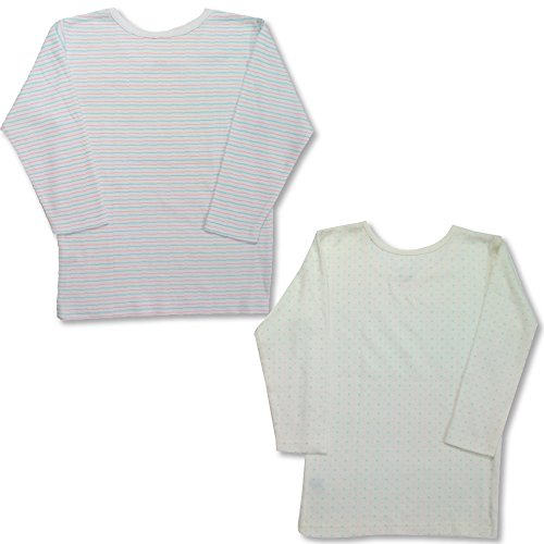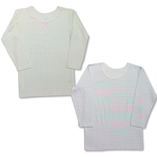 女児起毛インナー長袖2枚組(クリームドット/ボーダー柄)100.110.120.130 『5582』 (100)