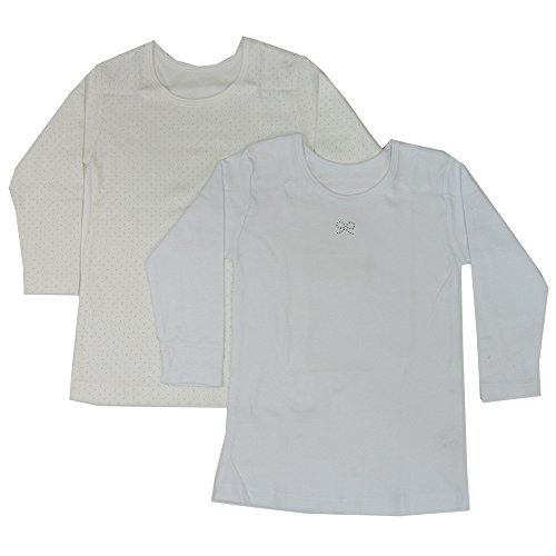 【あったかインナー】女児 2枚組スムース長袖(リボンラインストーン/グレードット柄)『7624』100~160 (130)