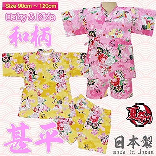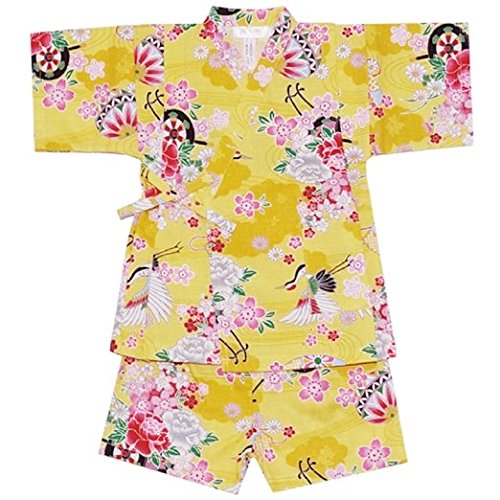 甚平 和柄 さくら 縫製も全て日本国内で行っております J-71654 (120cm, イエロー)