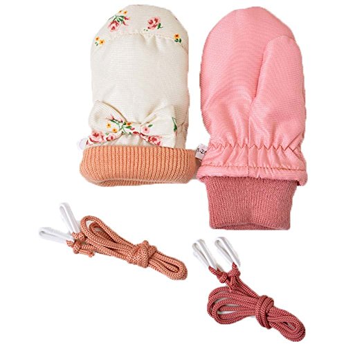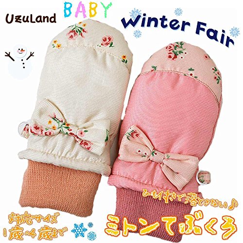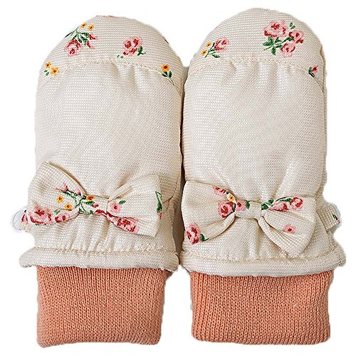 ミトン手袋 花柄 リボン 女の子用 通園やお外遊びに大活躍 j-284003 (3~4才用, アイボリー)