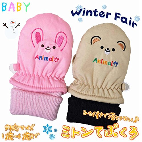 ミトン手袋 うさぎさん くまさん刺繍 通園やお外遊びに大活躍 j-280003 (3~4才用, くまさん)