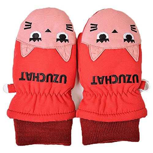 ミトン手袋 ネコ柄 通園やお外遊びに大活躍 j-284004 (1~2才用, レッド)