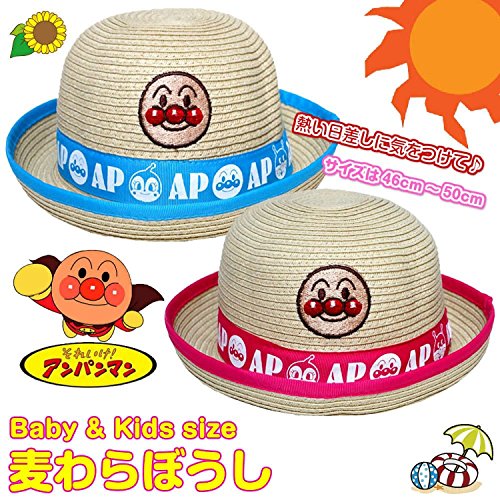 アンパンマン 麦わら帽子 ツバ広なので、強い日差しからしっかりとガードできる、ペーパーハットです。J-TA9791 (48cm, ピンク)