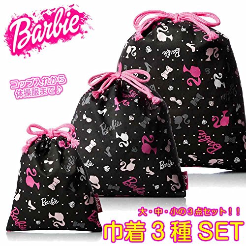 巾着袋 きんちゃく 3点セット バービー Barbie コップ袋 給食袋 体操服袋 女児 女の子 fo-bar2-600a ブラック