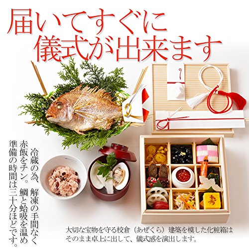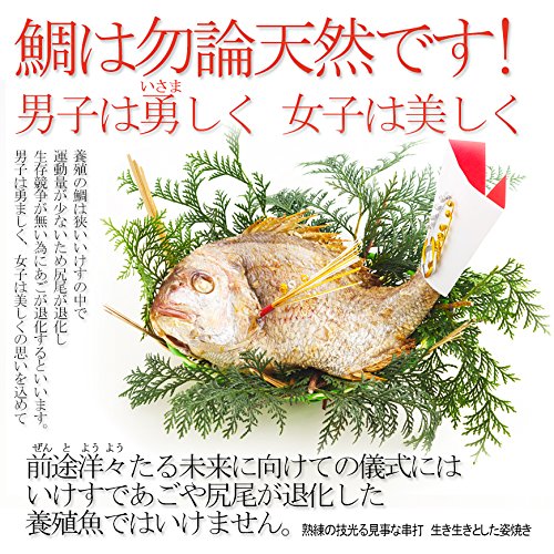 - 天然の鯛はちょうど家庭用の電子レンジで温められる大きさです。大さじ1杯の日本酒(無ければお水)を鯛全体にふりかけてラップをかなりふんわりかけて500Wのレンジで5分位。焼きたて同様にふっくらと美味しくお召し上がりいただけます。※1月2日~1月7日および8月13日~8月18日のお届けは休業期間中のためお食い初め料理セットをお届けできません。