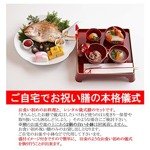 - 天然の鯛はちょうど家庭用の電子レンジで温められる大きさです。大さじ1杯の日本酒(無ければお水)を鯛全体にふりかけてラップをかなりふんわりかけて500Wのレンジで5分位。焼きたて同様にふっくらと美味しくお召し上がりいただけます。※1月2日~1月7日および8月13日~8月18日のお届けは休業期間中のためお食い初め料理レンタル容器セットをお届けできません。