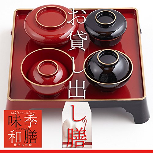 必ず下記の利用規約をご確認下さい。 (1)レンタル期間内に必ずご返送下さい。期日を超えてのご返送の場合、延長料(一日につき1000円税別を頂戴します。) (2)お貸し出しした商品を破損された場合は修理代金(修理が困難な場合は商品代金)を追加請求致します。 特に洗い傷にお気をつけ下さい。漆器は柔らかいスポンジ(硬い側は利用しない)にてやさしく洗って下さい。出荷前に商品の検品を行っています。著しい傷がある場合は到着時にご連絡下さい。 それ以降のご連絡では修理代金をご請求させていただく場合があります。 (3)お貸し出しした商品が返送不能もしくは修理不能となった場合は商品代金を追加請求いたします。 (4)商品は必ずお届けした箱に入れてご返送下さい。 同梱のヤマト運輸の返送用着払い伝票を貼り、お近くの取扱い店(コンビニエンスストアなど)にお持ち込み願います。 (5)必ずこちらのレンタル利用規約をお読みいただき同意の上でお申込ボタンを押して下さい。 (6)ご注文確定の時点で以上の利用規約に同意いただいたものとみなします。 ご不明点などはお気軽にお申し付けください。 ご注意(免責)> 必ずお読み下さい ※お料理の賞味期限は発送日から2日間です。 遠方の場合はお届日中の場合もございます。 ※ご注文を頂いてから、お届け日に合わせてお料理を作り、お届け致します。 急なご注文は地域によりましては間に合わない場合がございます。その際は当社より別途ご連絡ご相談をさせていただきます。 できるだけ注文~お届け日まで日時に余裕を持っていただきますようお願いいたします。