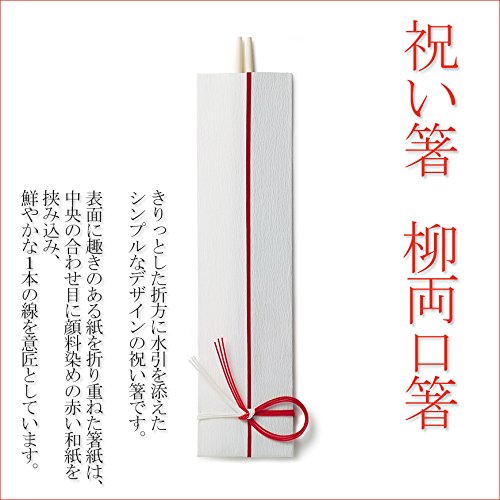 - 【祝い箸 柳両口箸】きりっとした折方に水引を添えた シンプルなデザインの祝い箸です。 表面に趣きのある紙を折り重ねた箸紙は、 中央の合わせ目に顔料染めの赤い和紙を 挟み込み、 鮮やかな1本の線を意匠としています。