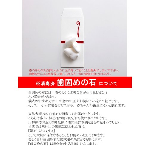 - 歯固めの石付のお食い初め食器セット(お食い初め儀式の行い方マニュアル付)◇歯固めの石◇両口柳箸◇お食い初めの行い方マニュアル付◇お食い初め器セット。お食い初の儀式はこれと手作り料理で行えます。