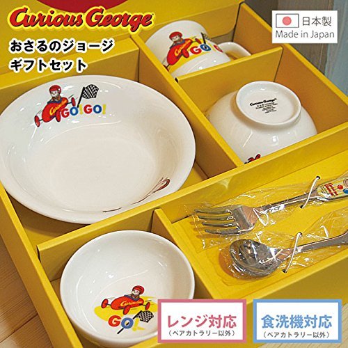 うれしいね!大好きなキャラクターと楽しくお食事! 幼いころから、陶器のよさに触れ、物を大切にする心を育てて下さい。 お子様の大好きなキャラクター「おさるのジョージ」 食器ギフトセット♪ 出産祝いや入園祝いのプレゼントにオススメのギフトセットです。 ・サイズ:・茶碗:直径10.5×H4.5cm ・コップ:直径7.5×H6cm 約180ml ・ボウルM:直径15×H4cm 約240ml ・ボウルS:直径8×H3.5cm 約100ml ・スプーン・フォーク:H12.8cm ・化粧箱入り ・材質:磁器、 スプーン・フォーク:ステンレス 装飾:シール、エポキシ樹脂 ・食器は電子レンジ・食洗器使用可 ・スプーン・フォークは電子レンジ ・食洗器使用不可 おさるのジョージ-Curious George-とは? H・A・レイ、マーガレット・レイ夫妻による 世界中で愛されているアメリカ生まれの絵本のシリーズ。 日本では「ひとまねこざる」の名前で1954年に出版されて以来、シリーズ化されています。