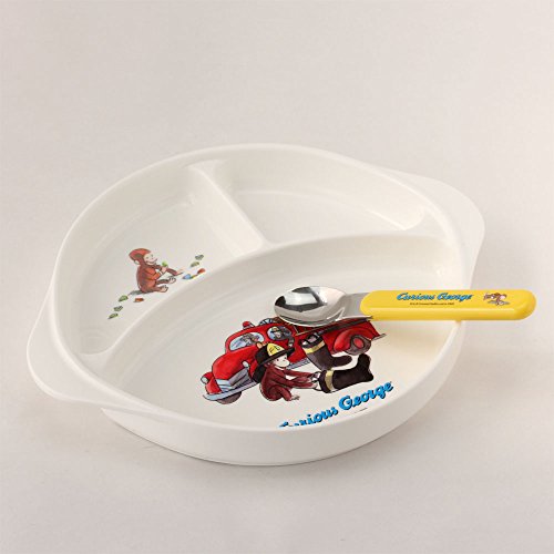 - 持ち手付きの「おさるのジョージ」のランチプレートです。